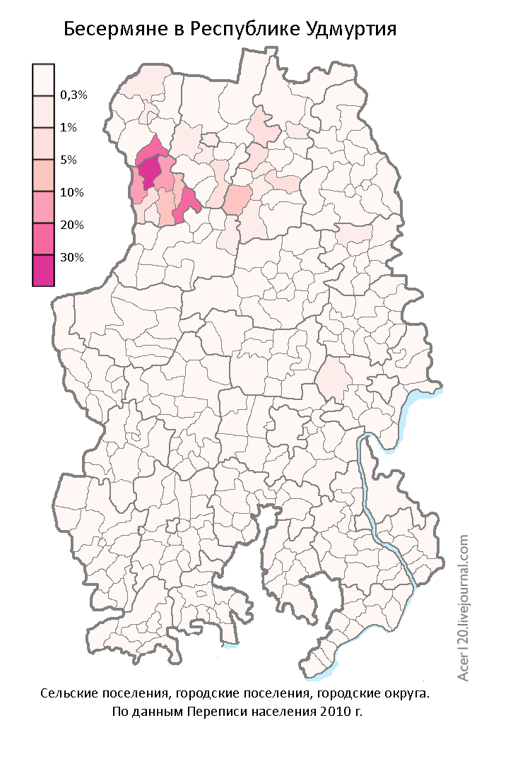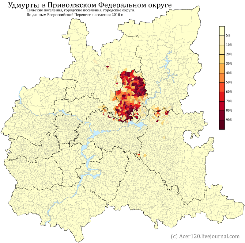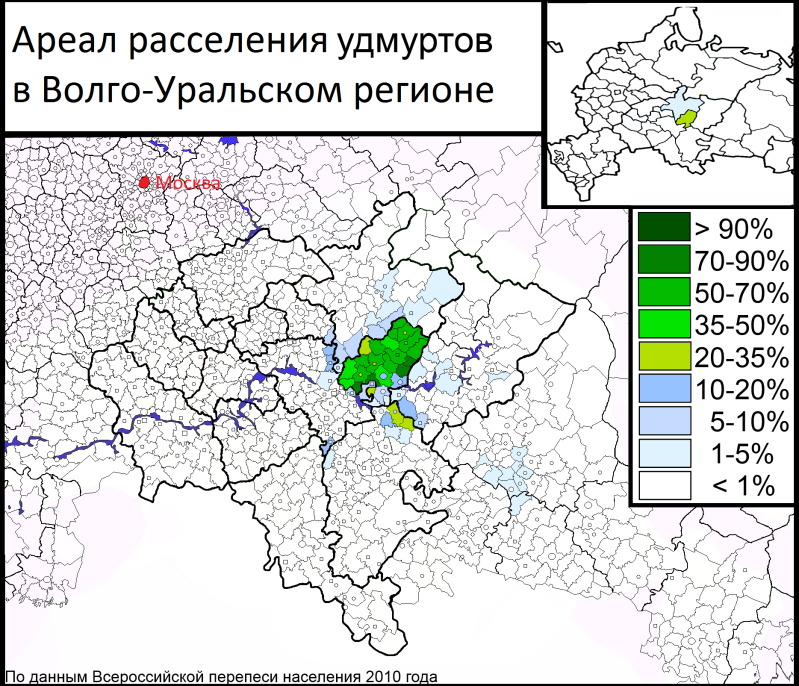 9. Ethnic map of the Udmurts in the Volga Federal District according to the 2010 Russian Census (in Russian). Author & source: see below.