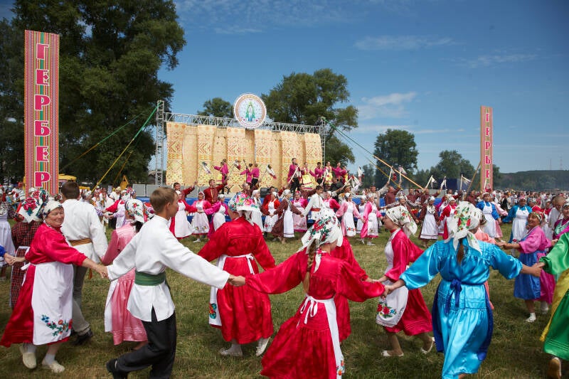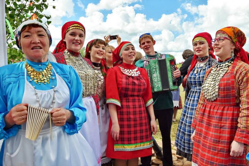 11. & 12. Udmurts in traditional clothing during the annual Gerber festival (Udmurt: Гербер). Author and source: see below.